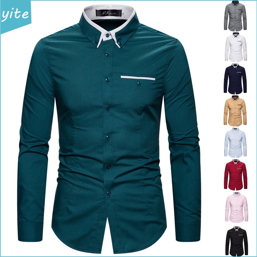 Kemeja Lelaki 9 Colors Slim Fit Men Shirt Long Sleeve Casual Business Plain Fashion M 5xl Baju Kemeja Lelaki Shopee Malaysia
