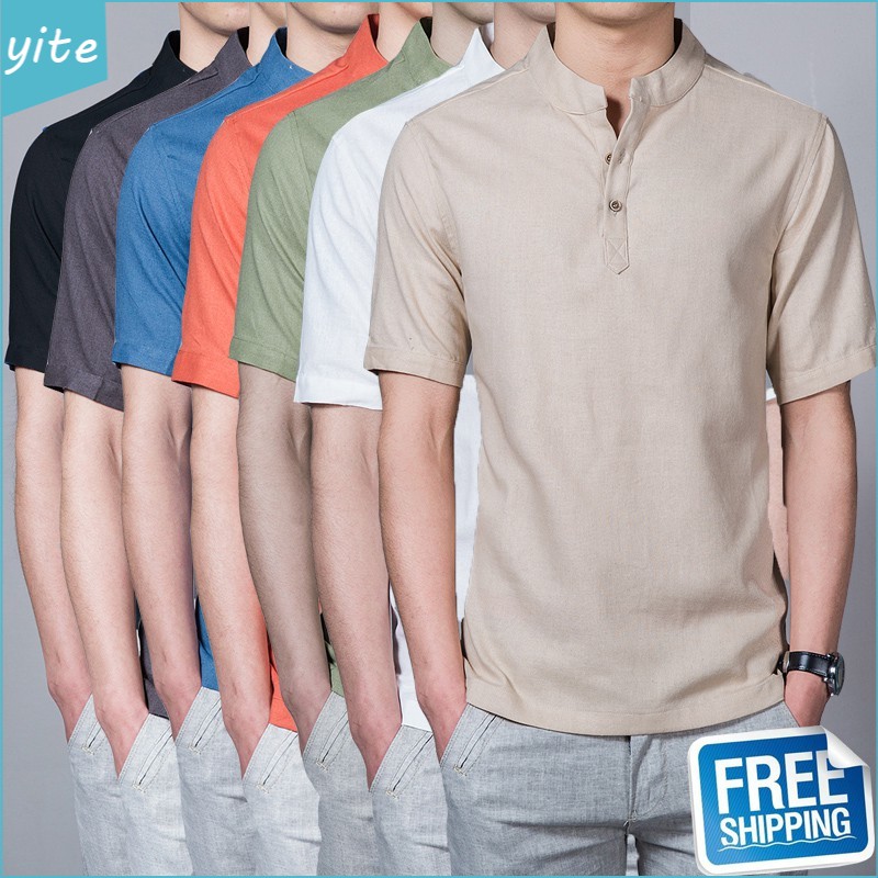 Kemeja Lelaki Fashion Linen Men Shirt Short Sleeve Slim Fit Plain Casual Baju Kemeja Lelaki Shopee Malaysia